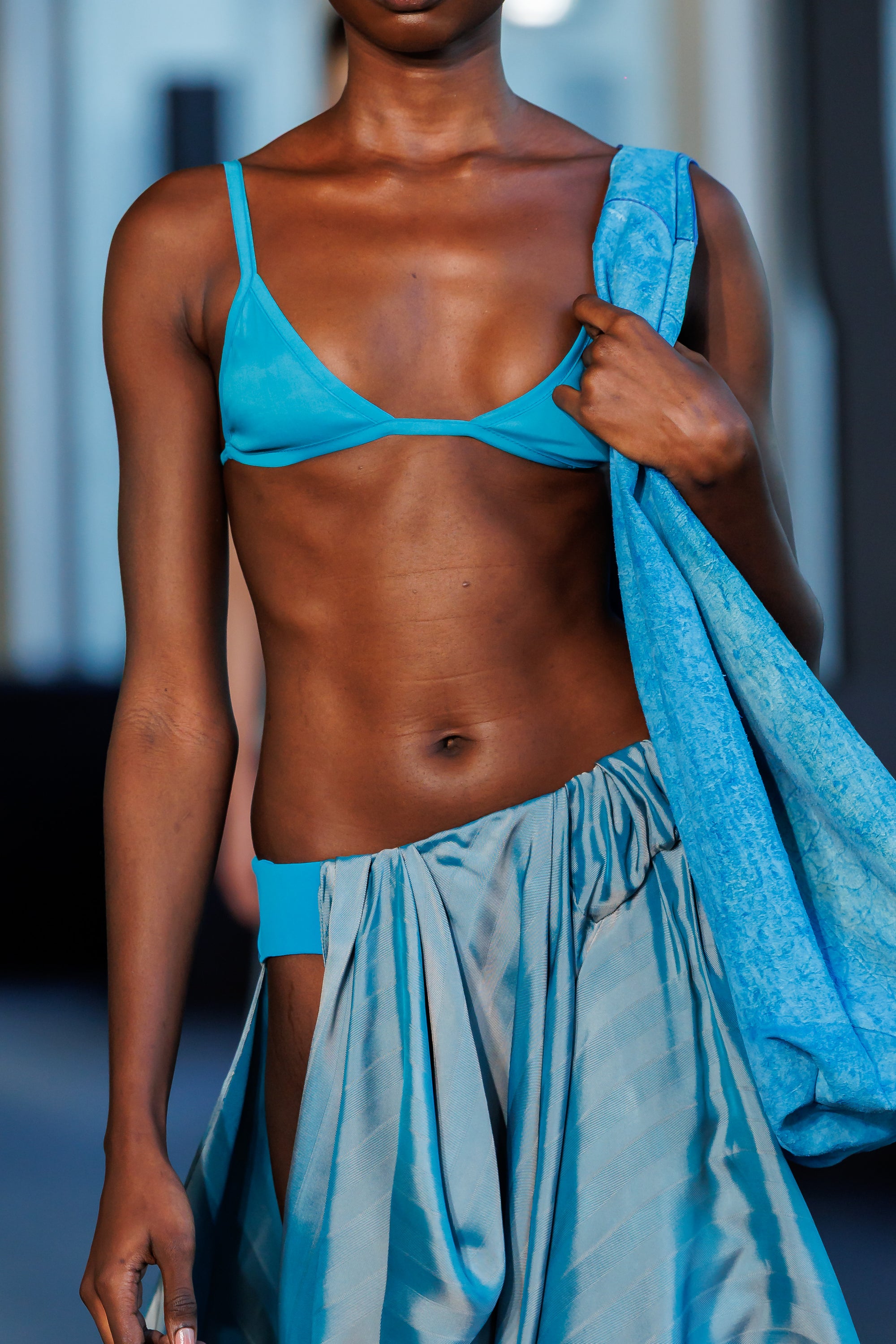 Drawing on gestures of beachwear, the collection reshapes garments in response to the elements. Moments of casual construction translate into a refined study of drapery and structure.